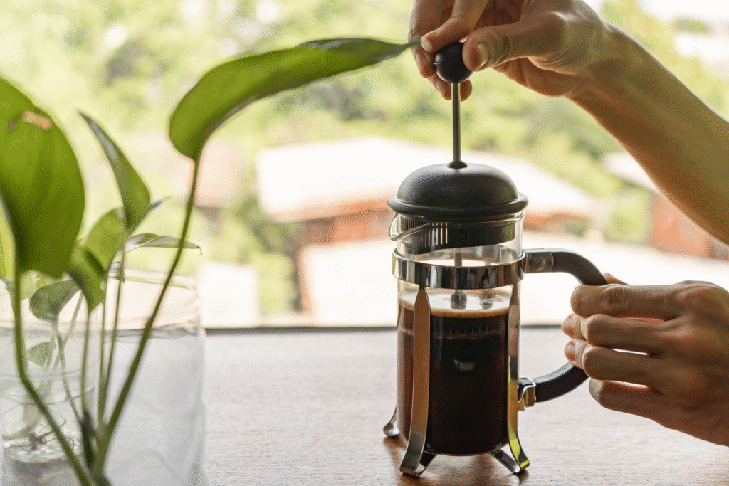 A experiência de degustar um café preparado na prensa francesa, ou cafeteira de êmbolo, é bem diferente. Para preparar: